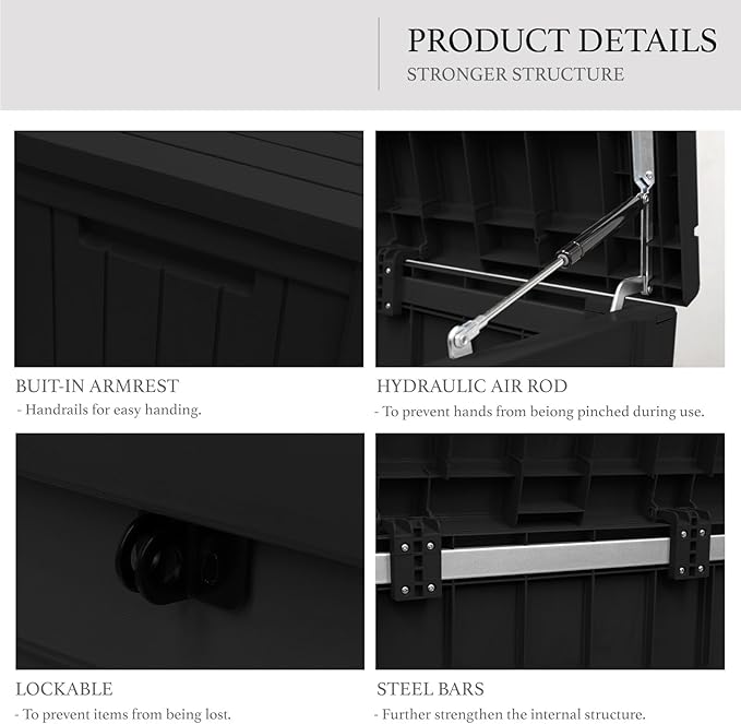 - Large Storage Box: Introducing our top-tier outdoor deck box! Made from anti-oxidation resin, it’s waterproof, fade-resistant, and spacious. Ideal for storing a variety of items, from tools to furniture and comforters.