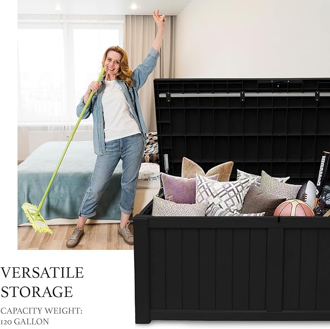 - Multifunctional: Perfect for storing items from blankets to gardening tools. It also serves as a comfortable bench seat and an elegant patio table, ensuring all your essentials are within reach for gatherings.