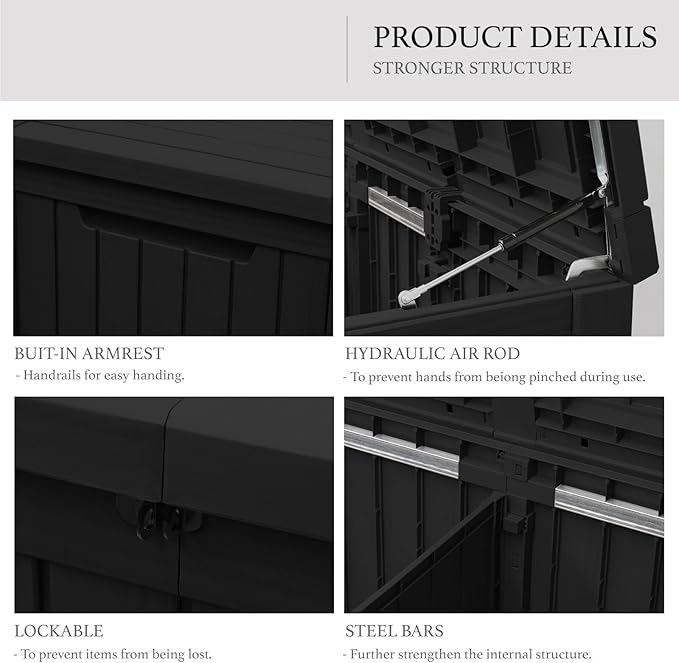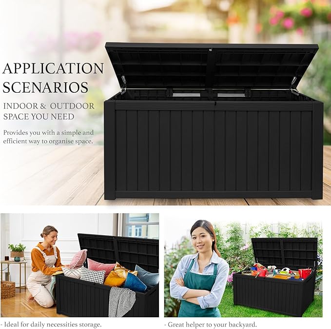 - Large Storage Box: Introducing our top-tier outdoor deck box! Made from anti-oxidation resin, it’s waterproof, fade-resistant, and spacious. Ideal for storing a variety of items, from tools to furniture and comforters.