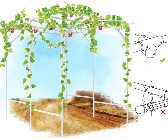 - Stable Structure -- Unlike metal iron clips, Our grape trellis uses traditional screws to hold them in place for stability while maintaining good-looking appearance. This garden arch trellis has a durable triangular support design that keeps the structure stable and sturdy enough to support plants with ease.