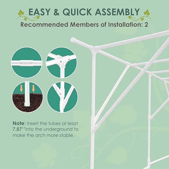 - Suitable Size -- Our grape vine support arch arbor is 79'' L x 59'' W x 79'' H, whose size is suitable for most gardens, it can save every inch of space in your garden. You can easily decorate or grow plants on it and enjoy with your family.