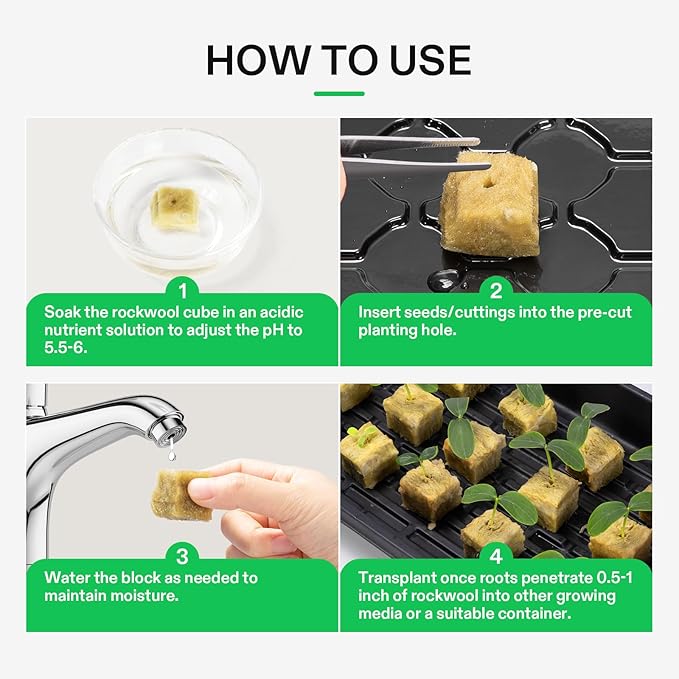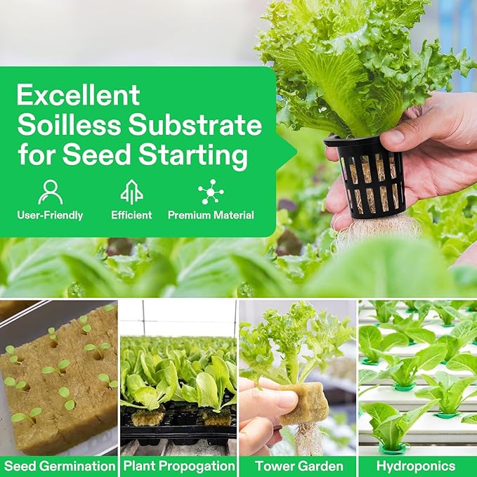 VIVOSUN 72 Rockwool Cubes & Net Pots Set for Hydroponics, 1.2” x 1.2” x 1.6” Cubes, 72 Plugs & 72 2” Net Cups for Hydroponic Growing, Seed-Starting, Cloning, Tower Gardens