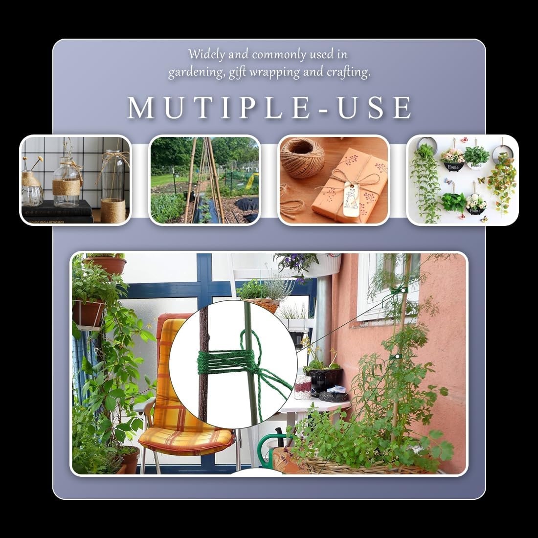 - 【FEATURES】Our twine is made from high-quality natural fibers. No harmful substances, no extreme stinky smell. Eco-friendly, biodegradable, and safely used around the house. Soft but strong, and widely used in packaging, strapping, gardening, greenhouses, pastures, bonsai because of its abrasion resistance, corrosion resistance, rain resistance.