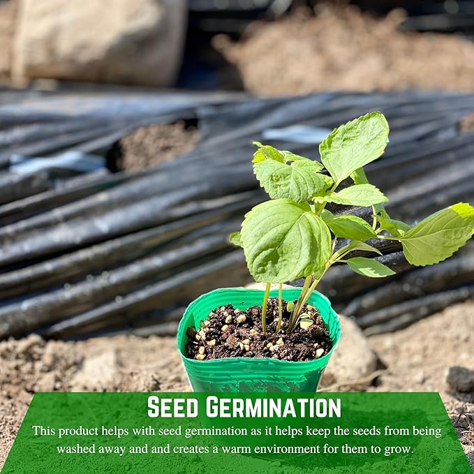 - Seed Germination: This product helps with seed germination as it helps keep the seeds from being washed away and and creates a warm environment for them to grow.