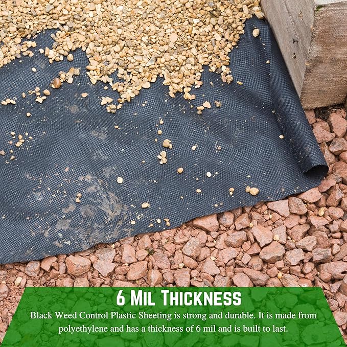 Farm Plastic Supply - Weed Control 6 Mil Black Plastic Sheeting - Heavy Duty Weed Barrier Landscape Fabric for Outdoor Gardens, Non Woven Weed Blocker Fabric, Weed Control (24' x 100')
