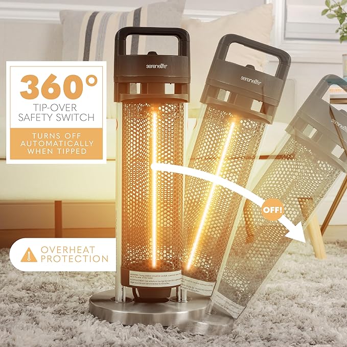 - SAFETY FEATURES: This outdoor heater includes a 360-degree tip-over switch, overheat protection, and a mesh guard to prevent contact with the heating element, ensuring safety for children and pets.