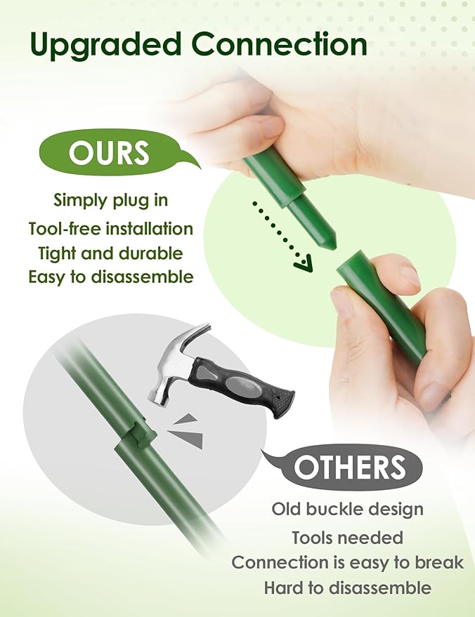 - ✔️ High-Quality Plastic, No Rot or Rust: These plant stakes are made of plant-friendly plastic that doesn't leach harmful chemicals, is UV-resistant, won't fade, and is environmentally friendly. Unlike wooden stakes, they prevent root rot in plants. Unlike moss poles, they don't shed moss, won't wither, and don't emit any peculiar odors.