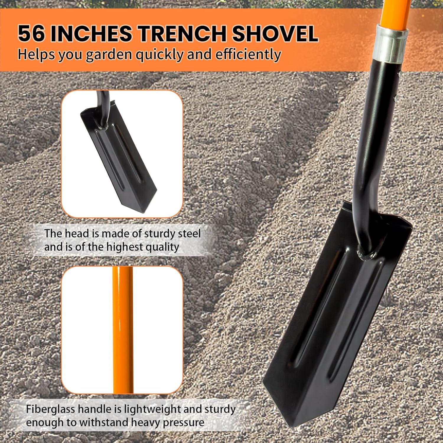 Trench Shovel for Digging, 4-Inch Trench Shovel, Heavy Duty Trenching Shovel with Fiberglass Handle, 56 Inches