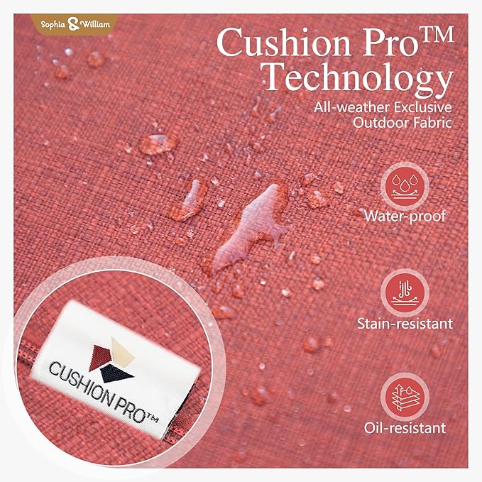 - Cushion-Pro Technology: Experience effortless maintenance with the Sophia & William conversation set. Crafted with premium olefin, our Patent Cushion Pro outdoor fabric boasts exceptional water-repellent, soil-release, and stain-resistant properties. Simply use a cleaning spray and watch the stains vanish, leaving your furniture looking as good as new