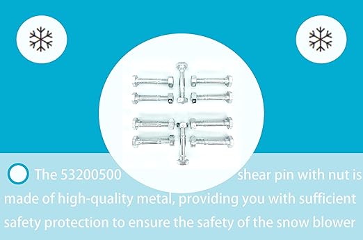 - ⭐ : 【 Material 】 The 53200500 shear pin with nut is made of high-quality metal, which provides you with sufficient safety assurance and ensures the safety of the snow blower