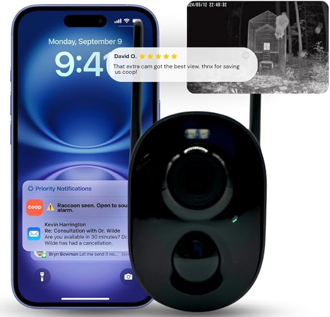 - CloudCluck Storage – Store and review 30 days of clucking and flapping moments.CluckWatch Predator Detection – Advanced detection using 7 million images of common predators, ensuring round-the-clock safety.