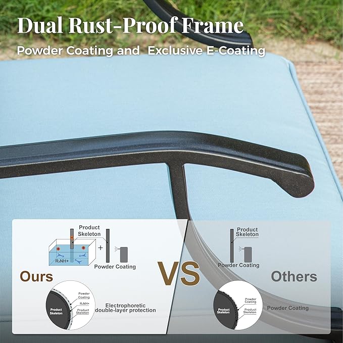 - 【RELIABLE ALL-WEATHER METAL CONSTRUCTION】Built from durable metal with E-COATING and POWDER-COATING finish, ensuring resistance to all weather conditions, rust-proof qualities, and easy maintenance. The sturdy wrought iron frame can withstand various weather conditions, with the single chairs supporting up to 350 lbs and the 3-seater sofa accommodating up to 900 lbs, promising long-lasting reliability and durability