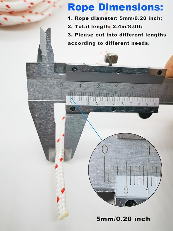 - Rope: L = 2.4meters/8.0ft, diameter: 5.0mm. Pack of 1.