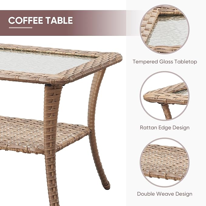 - Ergonomic Structure Features:The wicker patio furniture feature with high back and wide armrests, Ergonomic design of upgraded seating experience,fits the body's lumbar curve and supports your back and lumbar region, keeping you comfortable during long time of sitting.