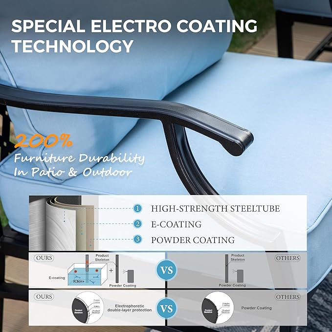 - 【RELIABLE ALL-WEATHER METAL CONSTRUCTION】Built from durable metal with E-COATING and POWDER-COATING finish, ensuring resistance to all weather conditions, rust-proof qualities, and easy maintenance. The sturdy wrought iron frame can withstand various weather conditions, with the single chairs supporting up to 350 lbs and the 3-seater sofa accommodating up to 900 lbs, promising long-lasting reliability and durability