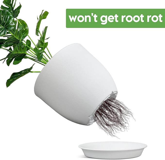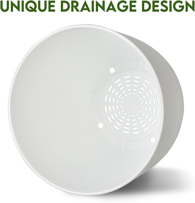 - [ STURDY PLASTIC LIGHTWEIGHT ] -Plastic plant pots are made by 5mm PP materials. It’s lightweight, durable, sturdy plastic with a matte exterior finish for a clean modern look.
