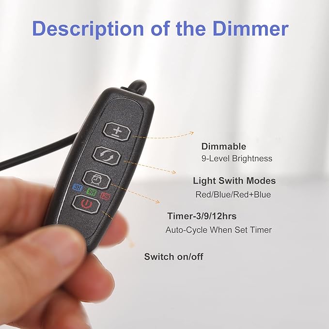 - 【9 BRIGHTNESS DIMMABLE 】LED growing lamp provide 9 brightness level from 20% to 100%. Which can promotes the growth of plant leaves, synthesis, prolongs the flowering stage and can apply for whole growth circle of different plants.