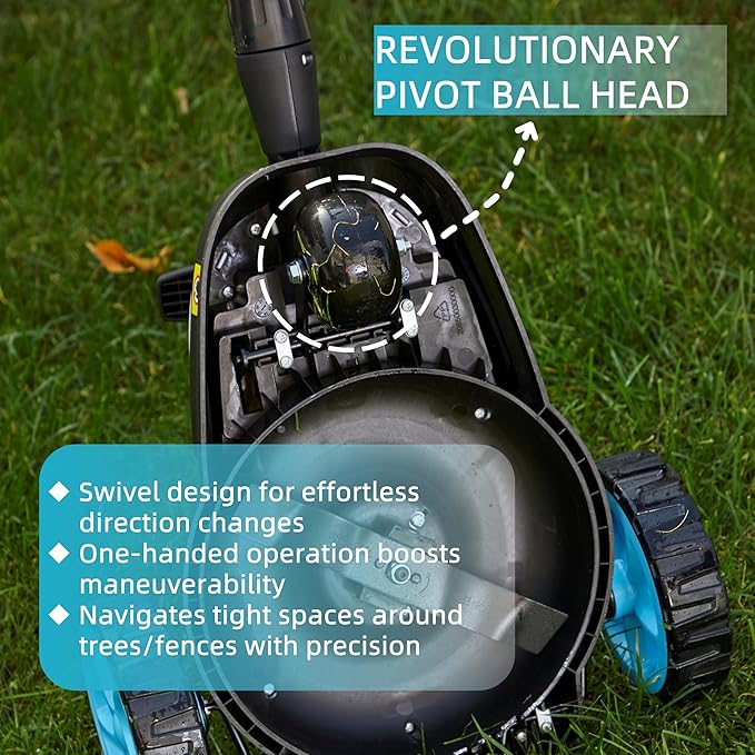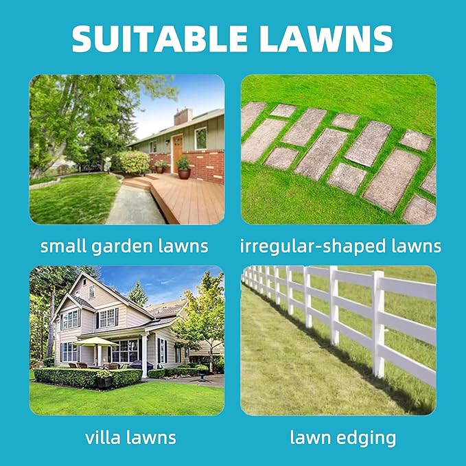 - [Ultra-Light & Compact] Weighing only 5.2kg (11.5lbs without battery), this mini cordless lawn mower is highly maneuverable with pivoting front wheels and one-hand steering—perfect for tight corners and small areas.