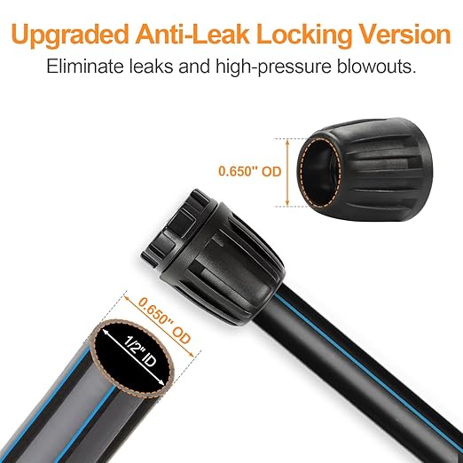 - Easy Installation & Leak Proof: Featured with sharp-barb design and twisting lock nut for super tight connection. Anti-Leak locking system ensure the pipe connect tightly to the fitting to eliminate leaks and high-pressure blowouts. Tapered ends make this 1/2" barbed connectors easier to handle and install.