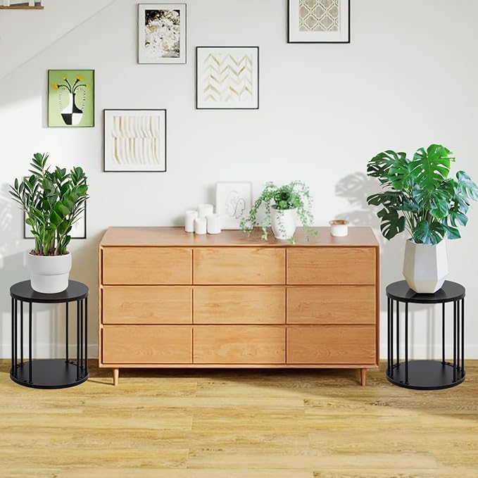 HDANI Wooden Stool Set of 2 for Kids,Adults,300lbs Load Capacity Garden Round Wood Stool,Non-Slip Small Step Stool for Plant Stand,Kitchen,Bathroom and Bedroom,Black