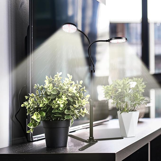 - Desktop Lamp for Plants Indoor - not only is the growth lamp height adjustable, it also comes with an adjustable base that allows you to arrange the 3 stabilizers to fit your space. Whether you have seedlings, tall plants, or other plants, this light provides the full amount of illumination.