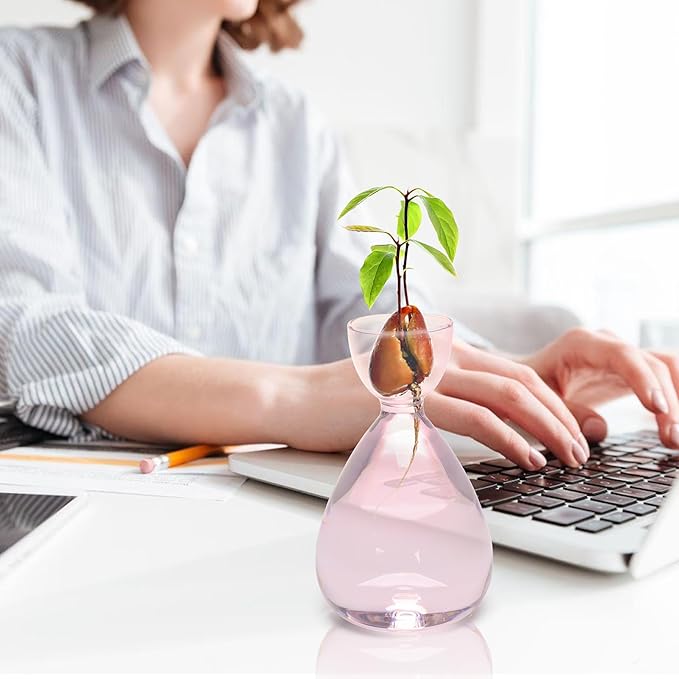 - Cute Design:Avocado seed starter planter vase has pure and simple fashion design,narrower on the neck,can be perfectly blended with avocado seed;The small diameter neck is perfect for lifting and moving.