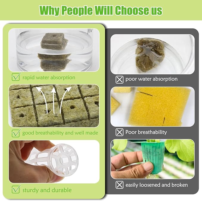 - β[ Package Include ]: You will get 100 pieces rock wool planting cubes 1 inch, 100 pieces hydroponics net cups 1.5 inch, and 2 tweezers. The quantity is sufficient, which can basically meet the planting needs of the family.