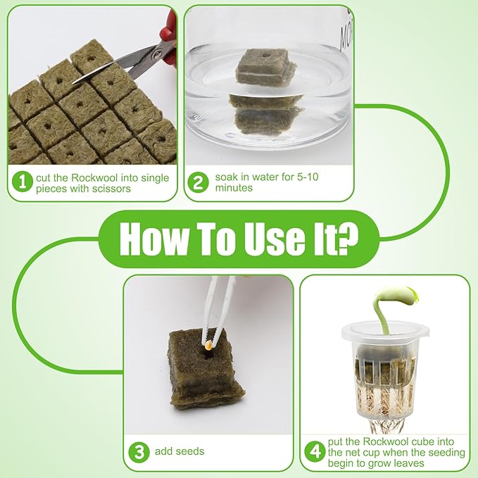 - [ Well Made ]: The rockwool cubes for hydroponics is made of inorganic fibers, and glass fibers free. The material is safe and has good breathability and moisture retention, soft, and texture. This rockwool grow cubes can be planted as a whole or individually (requires scissors to cut and cannot be torn by hand).