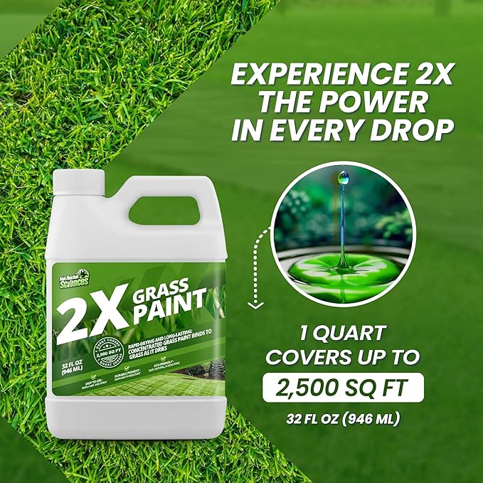 - 2X STRONGER GRASS PAINT: 1 Quart of this green grass paint for lawn covers up to 2,500 sq. ft. while 1 gallon of green grass spray covers up to 10,000 sq. ft., ensuring full coverage for a lush lawn.