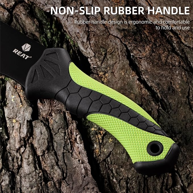 REAT Gardening Heavy Duty Machete,24" Full Tang Machete with Shaeth,Ergonomic No-Slip Handle,Machetes for Bushcraft, Outdoor Hunting, Garden Cutting Trees and Yard Work (Green)