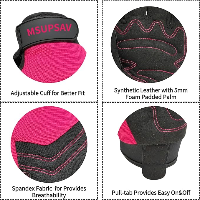 - 【MSUPSAV GARDEN GLOVES FOR GARDENING】Stretchable double-layer spandex design back keep your hands flexible,breathable&comfortable on the job. Leather with foam padded palm and reinforced fingertips increase durability.Supportive adjustable with hook& loop strips closure cuff for snug secure fit.