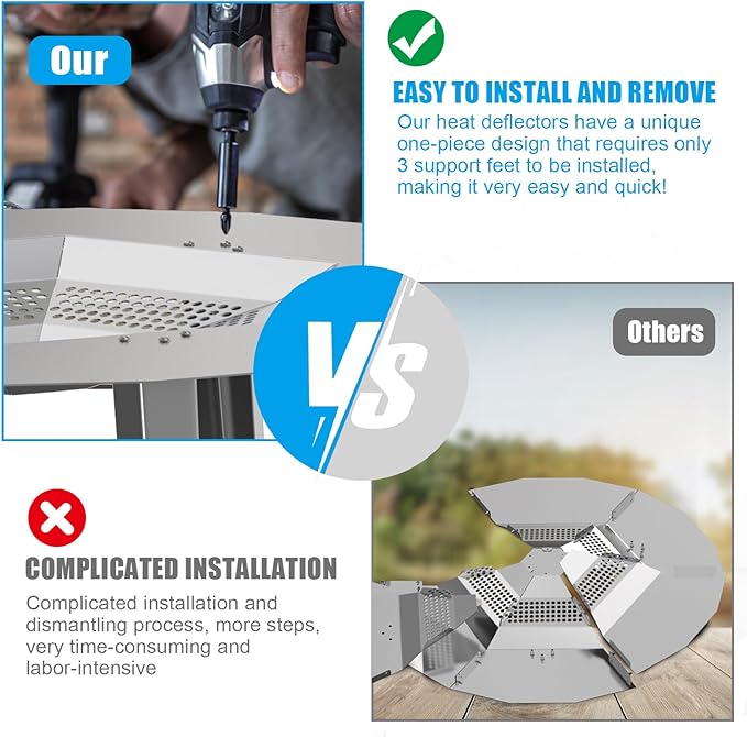 - [Easy Installation] Our heat deflector is a one-piece design and only requires the installation of three support feet to complete the installation. It eliminates the need for tedious assembly steps and allows you to easily install and disassemble without additional tools