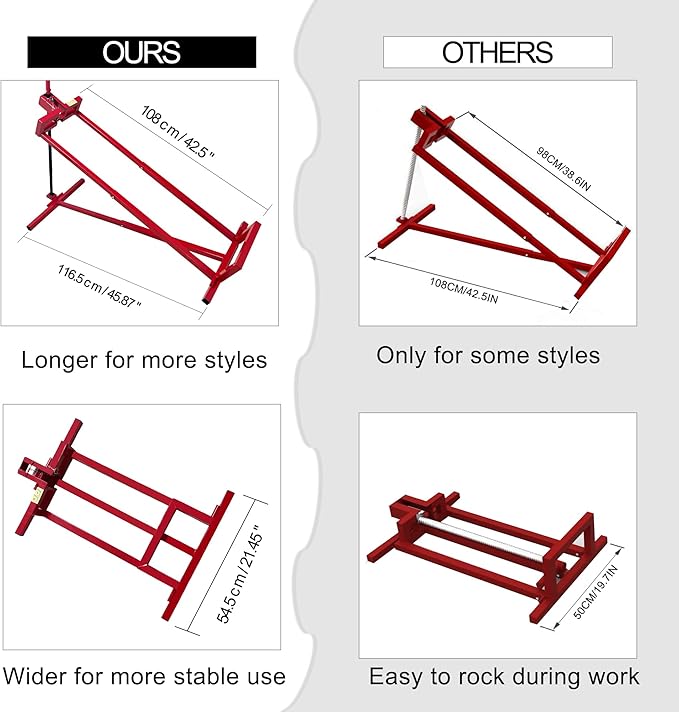 - ☪【Upgraded】: Our maintenance stand base is wider (54.5) and longer (inner size 108cm) than the regular model. The purpose of the extension is to accommodate larger-sized lawn mowers, and the purpose of the widening is to enhance stability during use.