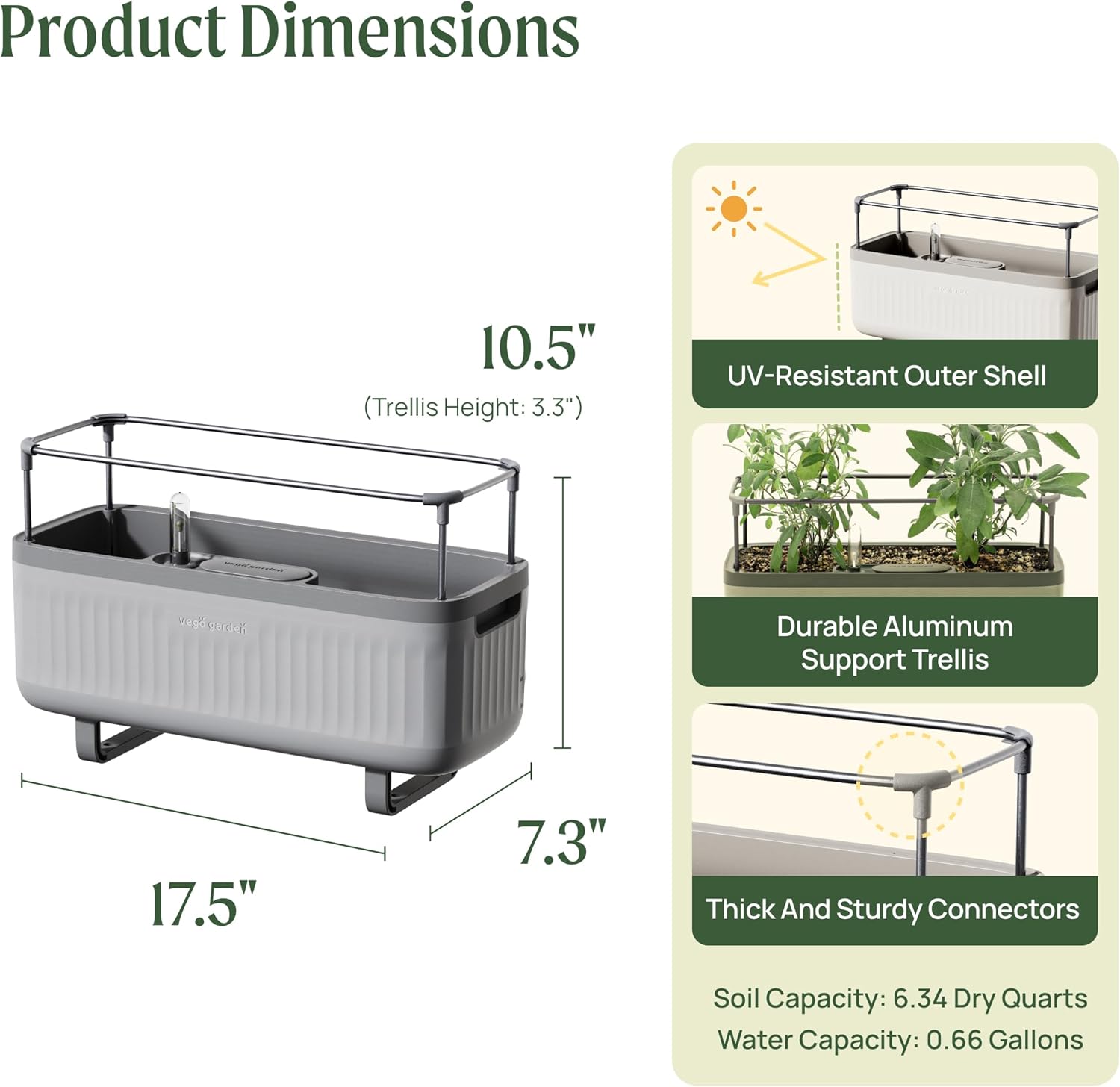 Vego Garden Herb Indoor Plant Box, Self Watering Planters Pots for Indoor Plants with Trellis for Kitchen Window Sill or Countertop Plants Cage - Fog Gray