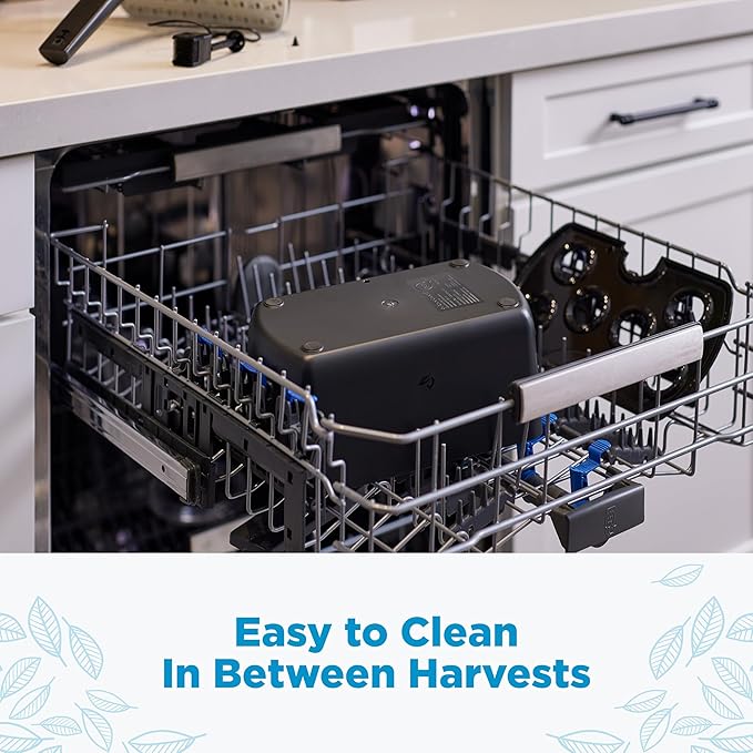 - FEATURES: In addition to its trendy aesthetics, the targeted grow light means more light on your plants and less on the surrounding area, plus the Harvest Lite features a one-button control nutrient reminder, and a dark grow deck to help prevent algae growth in the reservoir