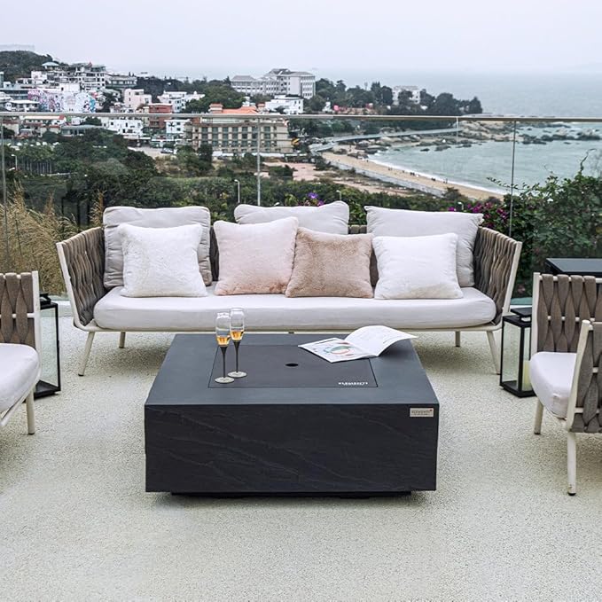 Roraima Concrete Fire Pit 40" x 40" Patio Firepit Includes Fire Glass Modern Fire Pits & Outdoor Fireplaces for Garden, Deck, Indoor & Outdoor Heating