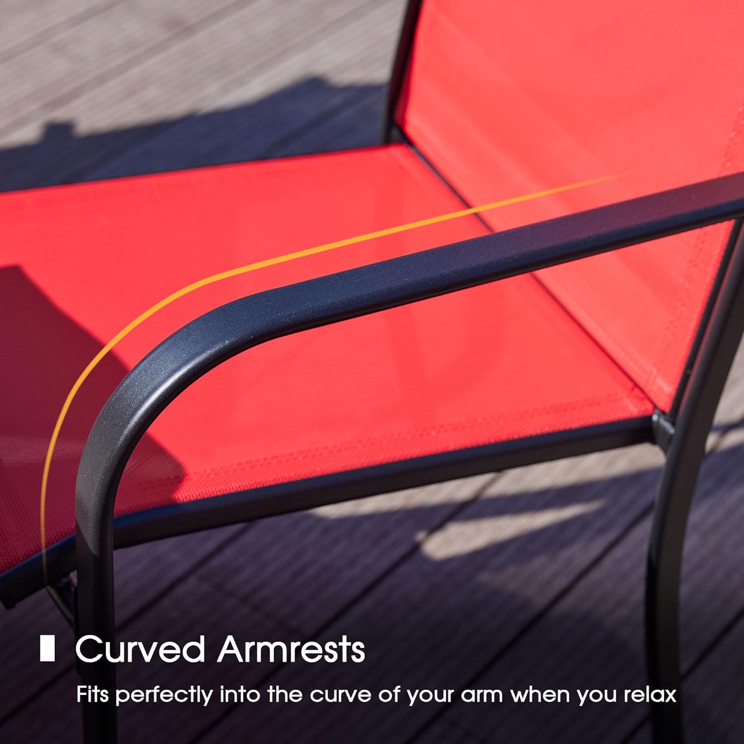 - 【Patio Dining Chairs】 Slight lawn chairs are stackable for space-saving and portability. Breathable patio chairs feature good airflow, UV, fade, and stain-resistant, comfortable to sit in the courtyard or garden on a hot summer day