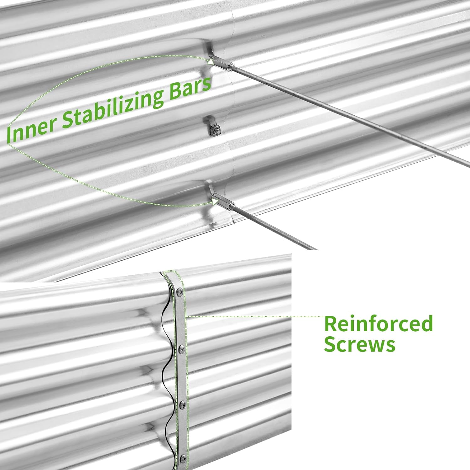 - Stable and Solid Construction: Double card frames on the two sides of the sheet make the raised garden kits more durable and stable, and 4 reinforcing rods make the whole raised garden bed more stable. Never worry about its distortion or collapse and it presents a much more beautiful design.