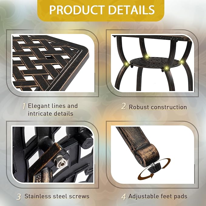 - PREMIUM CAST ALUMINUM: Crafted from high-quality cast aluminum, this round bistro table is built to withstand the elements. With exceptional durability, weather resistance and rust-proof features, it ensures long-lasting outdoor enjoyment with minimal maintenance required