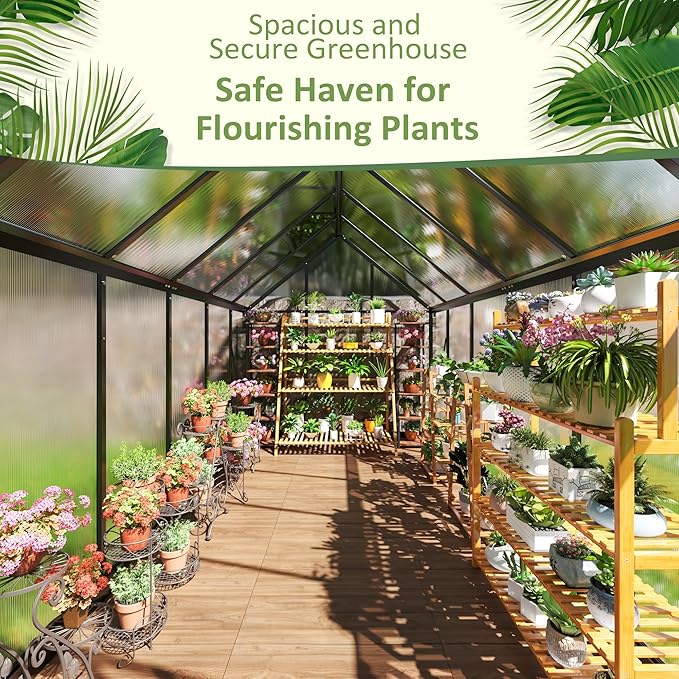 - 🏋【Strength That Endures】AirWire's green house is built with superior 720g polycarbonate panels and a reinforced aluminum frame for unmatched durability. Designed to weather the storms, it offers perennial protection for your flora, securing a resilient haven for year-round cultivation.