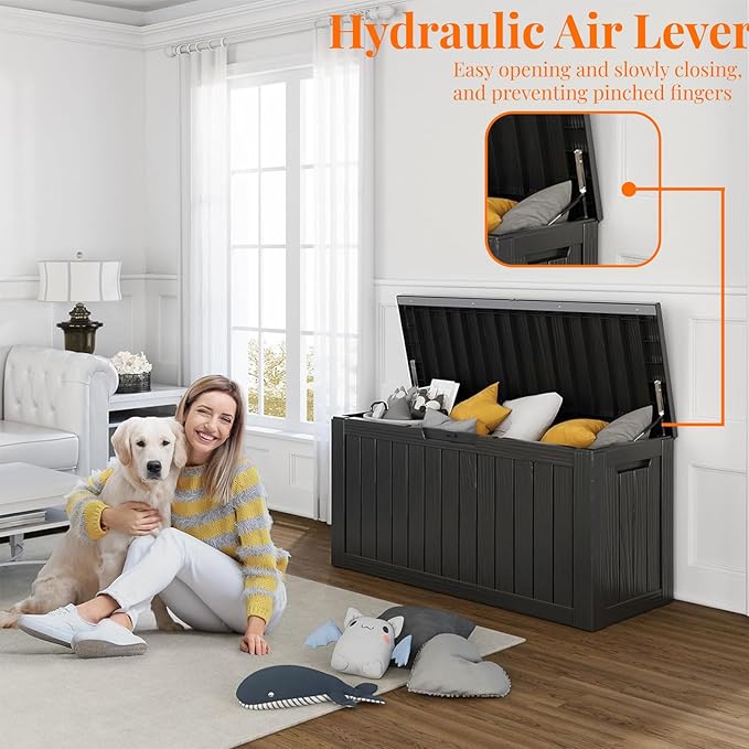 - VERSATILE IN EVERY SETTING: This patio storage box doubles as an indoor laundry organizer and an outdoor yard storage unit for cushions, garden tools, pool accessories, outdoor gear, and more, offering ample space. It can also serve as a side table, patio seat, storage bench, or footstool