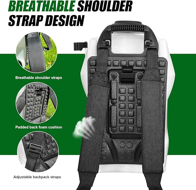 - Comfortable & Reliable: Adjustable backpack straps and padded back foam cushion of the yard sprayer increase comfort and reduce shoulder pressure. Backpack sprayer is ideal for weed and feed lawn fertilizer, spraying fertilizers or herbicides, house or car cleaning, disinfecting. Comes with worry free 12-month warranty and 7/24 online service. Any questions about product, feel free to contact us.