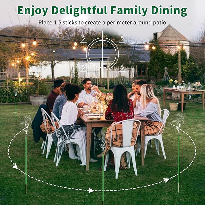 - Suggested Placement: For optimal coverage in seating areas, space 4-5 sticks 12-15 feet apart