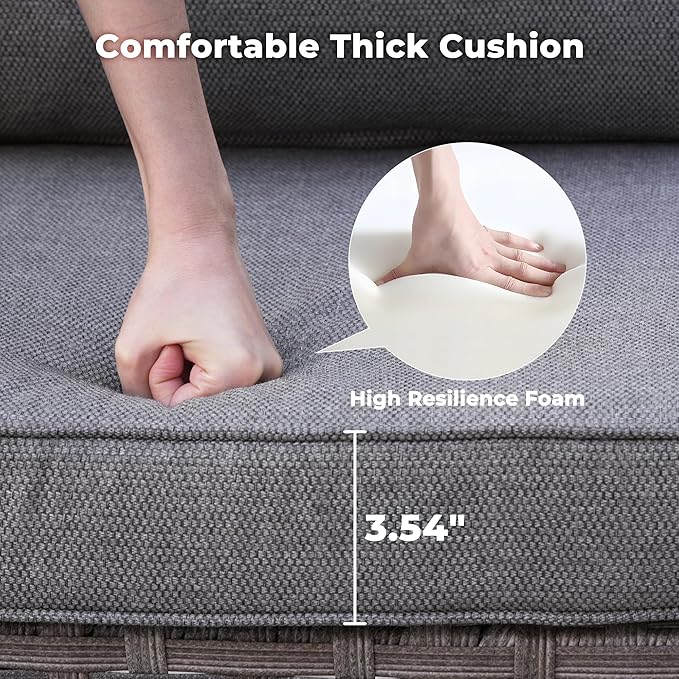 - All-weather Wicker Rattan: Our outdoor sofa sets have very durable PE wicker rattan for all-weather use and a natural texture with good coloring. The high-quality patio seating made of powder coated steel frame ensures good strength and stability
