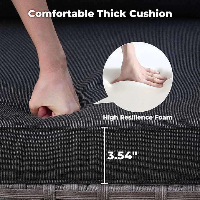 - Upgraded Widen Armrests: The outdoor sofa feature with a 7.68-inch extra wide armrests designed to relax your arms, twice the width of a normal armrest, wide enough to hold a laptop