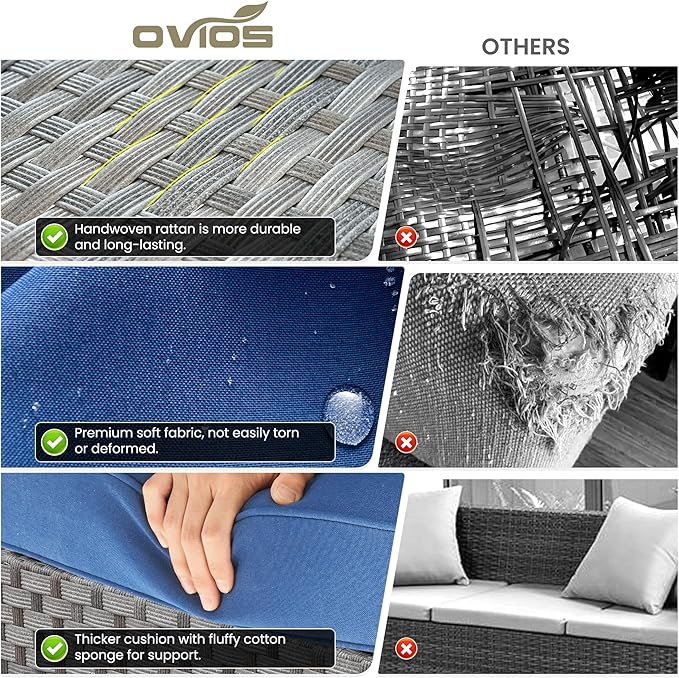 - Outdoor Furniture Set: This patio sofa set can well integrated into different outdoor scenes, patio, outdoor, porch, garden, backyard, balcony, poolside, lawn, yard, deck, etc. Assembly Tips: OVIOS outdoor patio furniture set comes with all hardware & necessary tools