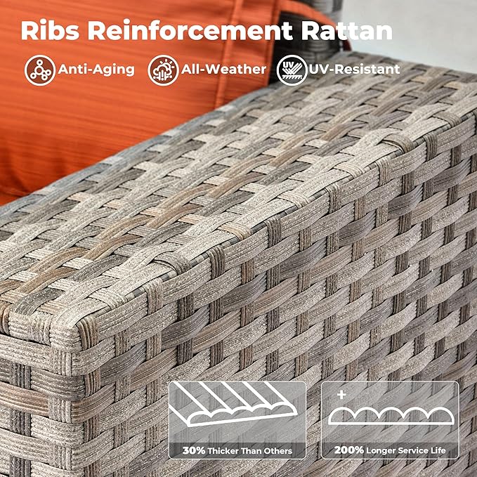 - All-weather Wicker Rattan: Our outdoor sofa sets have very durable PE wicker rattan for all-weather use and a natural texture with good coloring. The high-quality patio seating made of powder coated steel frame ensures good strength and stability
