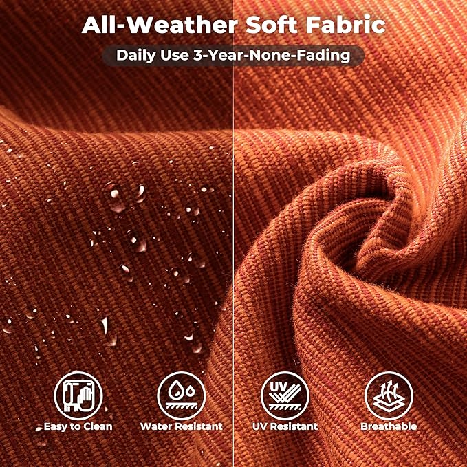 - Comfy Upgraded Cushion: The outdoor chair cushion is composed of a weather-resistant olefin fabric cushion cover wrapped in a thick inner core, making it very comfortable and breathable to sit on the chair, and give you strong lumbar support