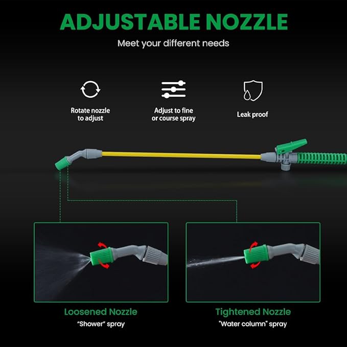 - PRECISION AT YOUR FINGERTIPS: The reinforced flexible hose, paired with a chemical-resistant polymer wand, continuous spray controller, and adjustable nozzle, provides unparalleled precision. From a fine mist for delicate flowers to a targeted stream for stubborn weeds, our pump sprayer adapts to your every need