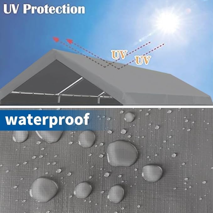 - 【Carport Canopy Size】10'x20' Car Canopy with Edge and same Fabric Leg Pole Skirts, This heavy duty Carport Replacement Canopy Cover is made to fit 10'x20' frames. We recommend measuring the frame before purchasing.